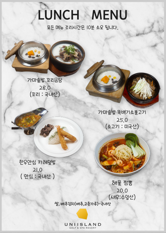 |이벤트 제목 : 2024년 10월 식음메뉴 개편 혜택 : 2024년 10월 식음메뉴 개편 시작일자 : 2023년 02월 01일 수요일 종료일자 : 2024년 12월 31일 화요일 등록일 : 2024-12-04 조회수 : 23189 이전 이전글이 없습니다. 다음 조인 전용 타임 오픈! 2024-12-04 목록